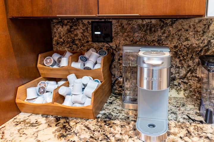•Full kitchen appliances including blender and coffee maker